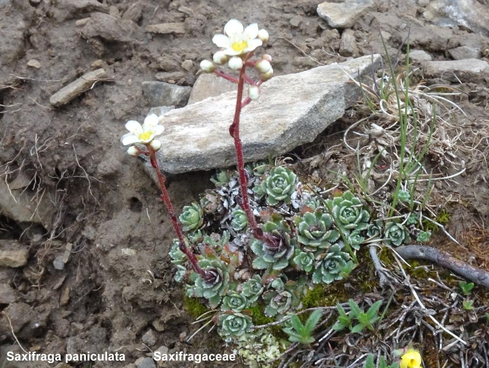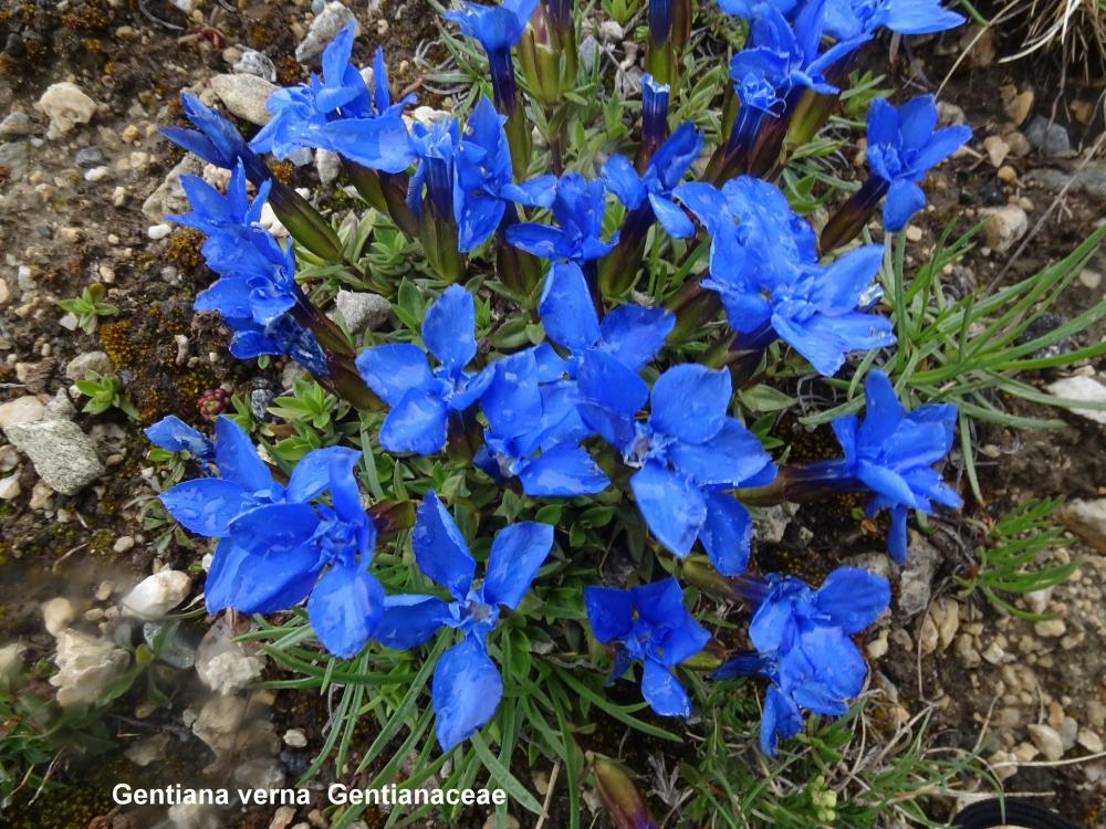 Nous cheminons par un sentier au milieu de prairies et pierriers couverts de Gentiana verna et acaulis, Androsace adfinis subsp. Puberula et vitaliana, Phyteuma globulariifolium subsp. Pedemontanum…….