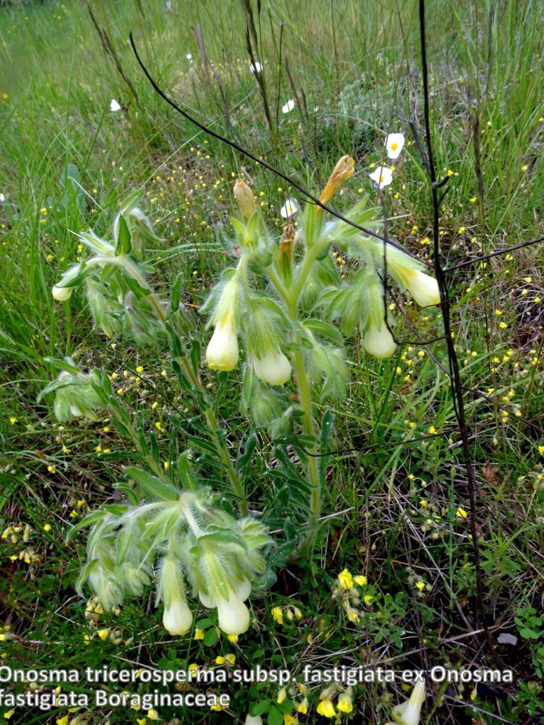 A l’arrêt suivant de magnifiques touffes de Pulsatilla vulgaris var. serotina s’offrent à nous. Nombreux sont ceux qui découvrent une boraginacée jaune Onosma tricerosperma subsp. fastigiata.