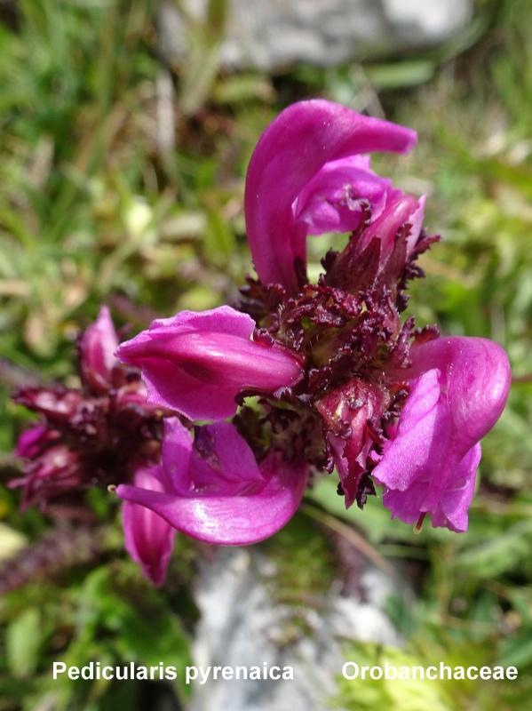 Nous avons ensuite herborisé sur les versants ouest et est du col. Nous y avons fait de belles découvertes telles que : Brimeura amethystina, Erinus alpinus, Centaurea cyanus, Horminum pyrenaicum, Androsace villosa...... Nous avons été surpris par la taille des Rhamnus pumilla, qui malgré leur aspect de bonzaï avaient atteint un âge vénérable. Les adeptes de la paréidolie ont certainement mis leur don en application devant la magnifique Nigritella gabasiana.
