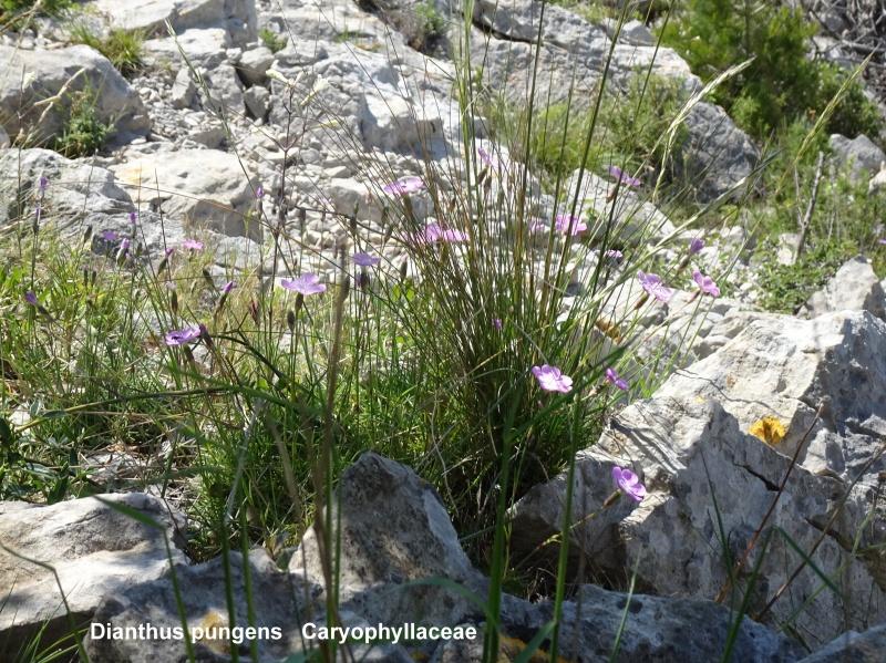 L’après-midi nous rejoignons le massif karstique de La Clape constitué d’un ensemble de collines séparées par des vallons souvent encaissés et bordés d’escarpements rocheux. Grâce à l’œil perçant d’Amaury nous apercevons trois pieds de Centaurea corymbosa centaurée de la Clape au loin en haut d’une falaise. Espèce endémique de l’Aude, elle pousse exclusivement dans le massif de la Clape, s’accrochant aux parois rocheuses des falaises. Petite plante trapue aux fleurs roses et pourpres, elle ne fleurirait qu’une fois tous les trois à cinq ans, avant de s’éteindre définitivement.