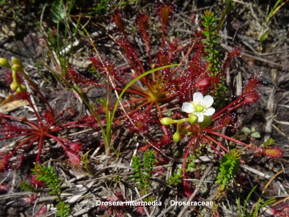 Nous observons les habituelles plantes du marais, Lysimachia tenella, Drosera intermedia, Schoenus nigricans et de belles et rares stations de Caropsis verticillato-inundata en fleur. La Lobelia dortmanna fleurie très précocémment cette année (photos prises en fin de floraison le 2 juin 2017), est déjà en fruit. Les Littorella uniflora sont elles aussi fanées. Ces trois espèces sont protégées au plan national. Nous trouvons également un lotier protégé en Aquitaine Lotus hispidus.