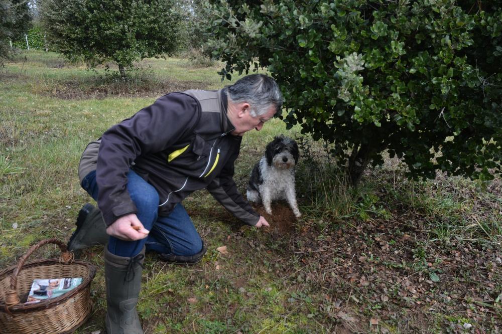 L’après-midi, nous avons également été chaleureusement reçus par Madame Boyreau et son mari dans leur truffière. Nicky, le petit chien nous a fait une démonstration magistrale de cavage ce qui a permis à chacun d’entre nous de repartir avec son diamant noir.