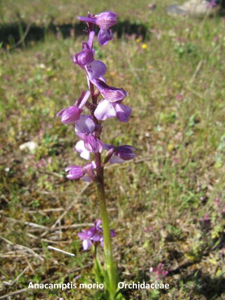 Les Anacamptis morio sortent à foison ainsi que des Ophrys, dont certainement différents hybrides difficiles à identifier avec certitude. Nous nous en tiendrons aux déterminations de Bertrand et d’Alfono : Ophrys sphegodes et Ophrys araneola.