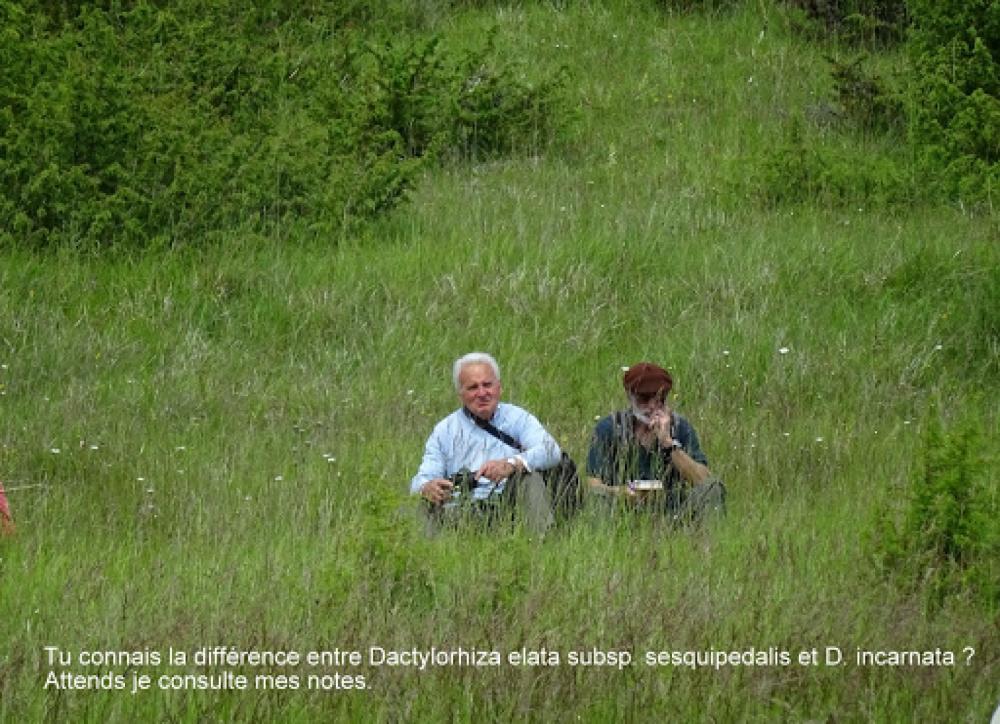 Et là nous avons le bonheur de découvrir la splendide Dactylorhiza elata subsp. sesquipedalis ou Dactylorhize des Charentes. Elle côtoye Dactylorhiza incarnata. Elles s'hybrident souvent. Leur détermination n'est pas toujours aisée.