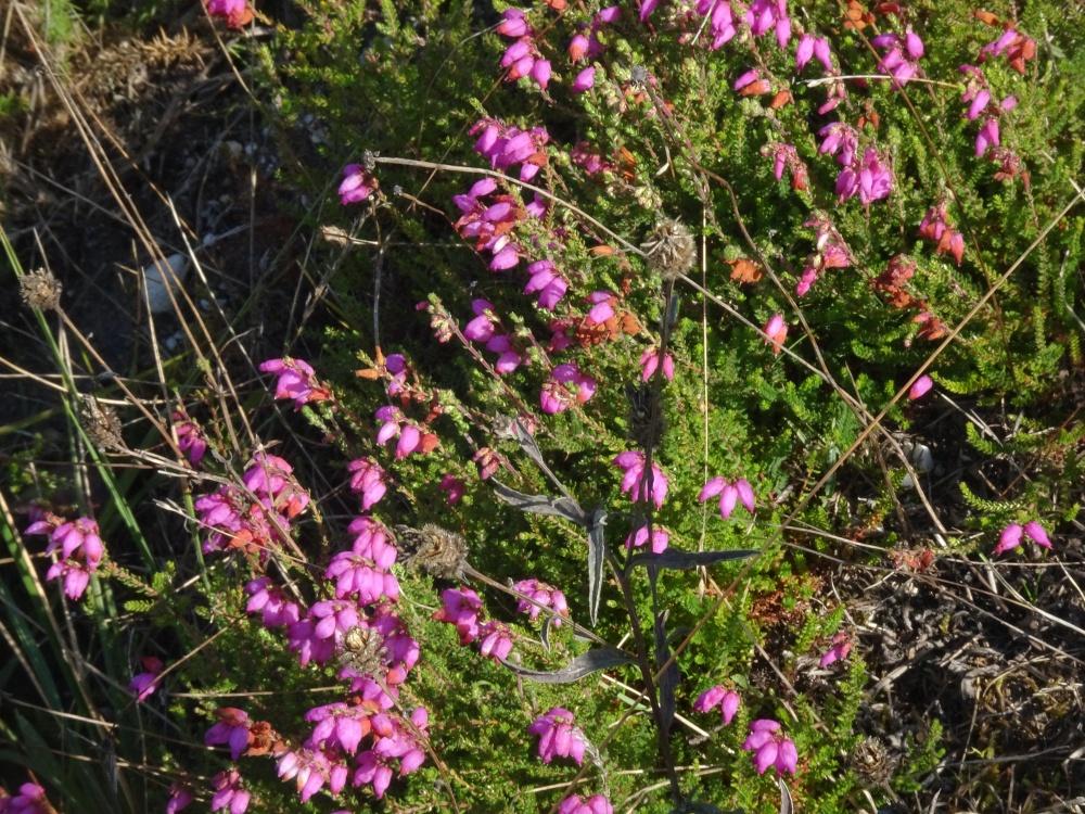 Malgré le fauchage des pistes et les conditions climatiques estivales nous avons eu la chance de découvrir les plantes de ces milieux sableux, acides et parfois humides : Gentiana pneumonanthe, Erica tetralix et ciliaris, Serratula tinctoria, Lobelia urens, Jasione montana, Trocdaris verticillatum, Allium ericetorum, Schoenus nigricans, Radiola linoides, Spiranthes spiralis, Illecebrum verticillatum, Succisa pratensis…….